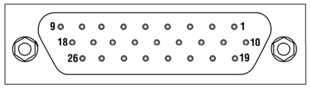 A single-axis or two-axis controller model may contain a 9pin DSub male joystick connector.