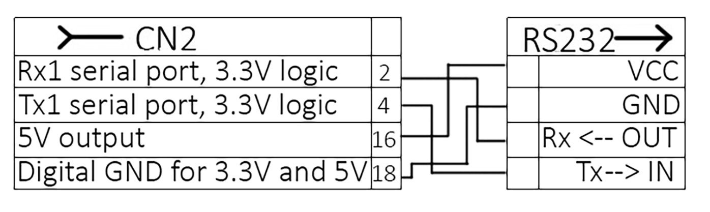 - Connect the Waveshare RS232 board to the 8SMC5-USB controller according to the following scheme:
