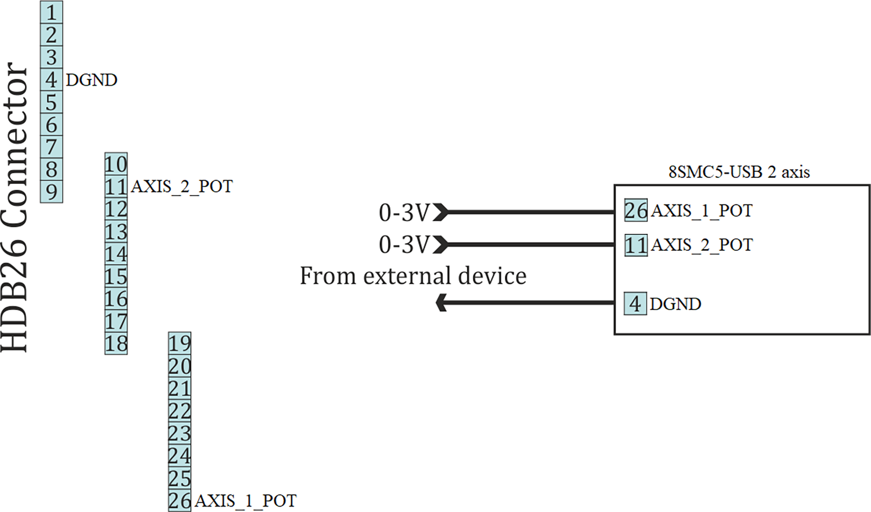 Only two-axis system has general purpose analog input on supplementary HDB-26 connector.