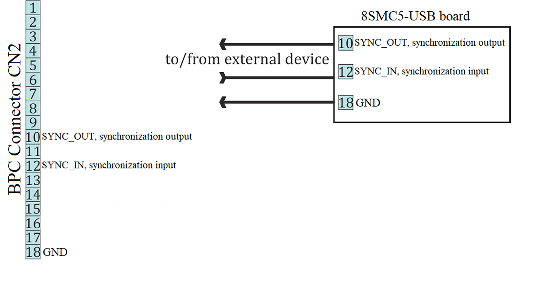 Controller board contains two TTL-channels of synchronization on the BPC connector.