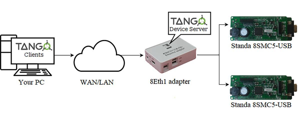 Standa 8SMC5-USB controllers are compatible with TANGO 8.1 system via custom device server implementation and can be used in two scenarios: