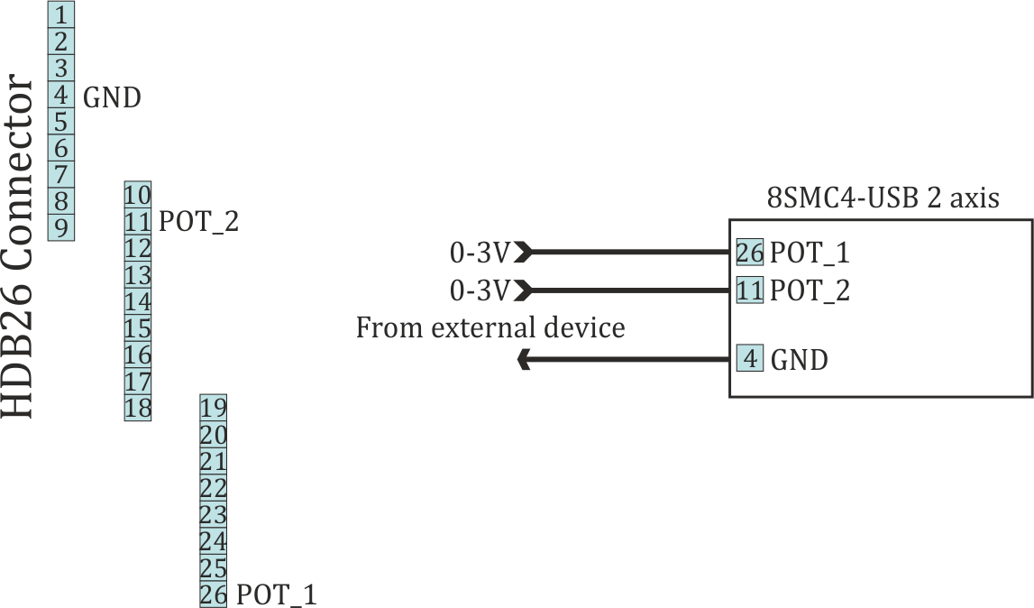 Аналоговый вход есть только в двухосной системе и расположен на HDB-26 разъёме.