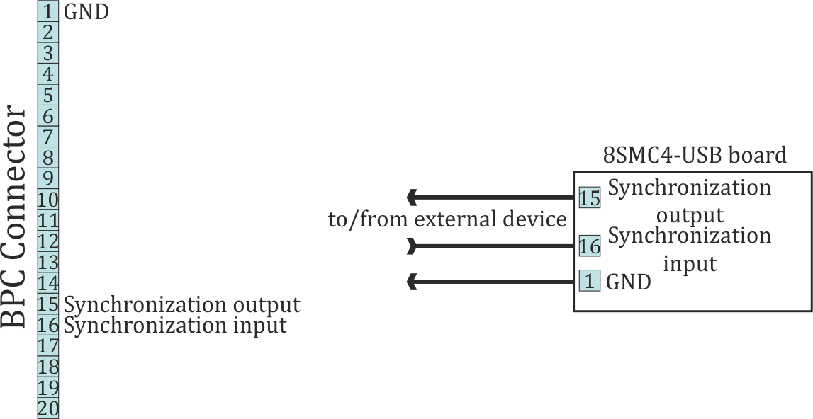 В плате контроллера предусмотрены два ТТЛ-канала синхронизации на разъеме BPC.